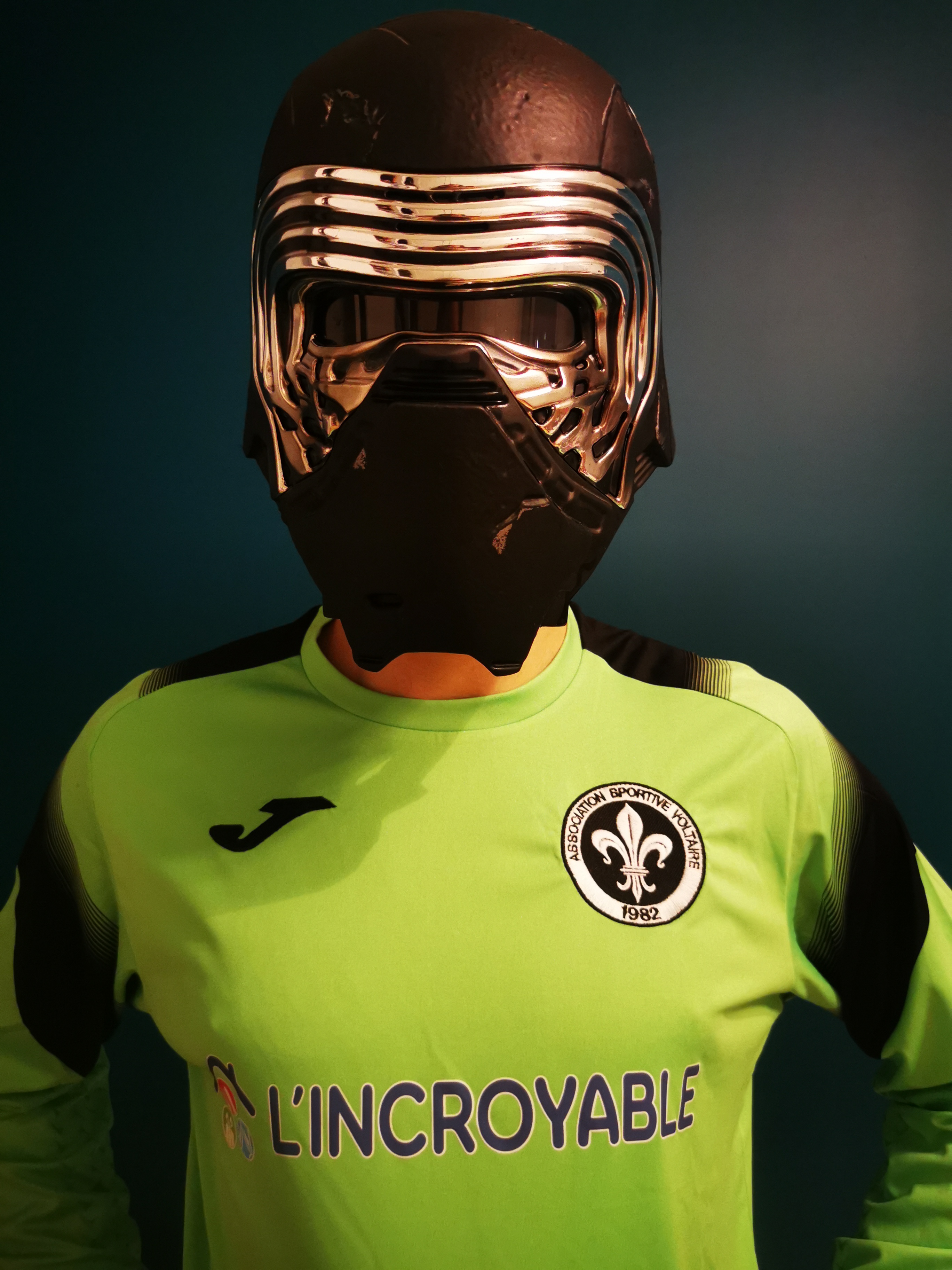 Parce qu’il fallait bien commencer par le numéro 1, la nouvelle tenue de gardien sera verte fluo ! Sur le devant, le maillot arborera le logo de l’AS Voltaire en blanc et le nom de notre nouveau sponsor sur le ventre. On remarquera également de jolies rayures noires sur les épaules et les manches, qui rappellent les couleurs de la marque espagnole JOMA.