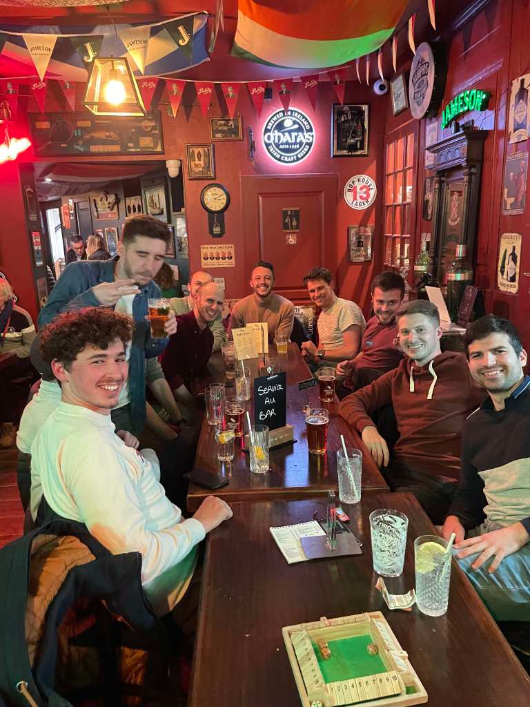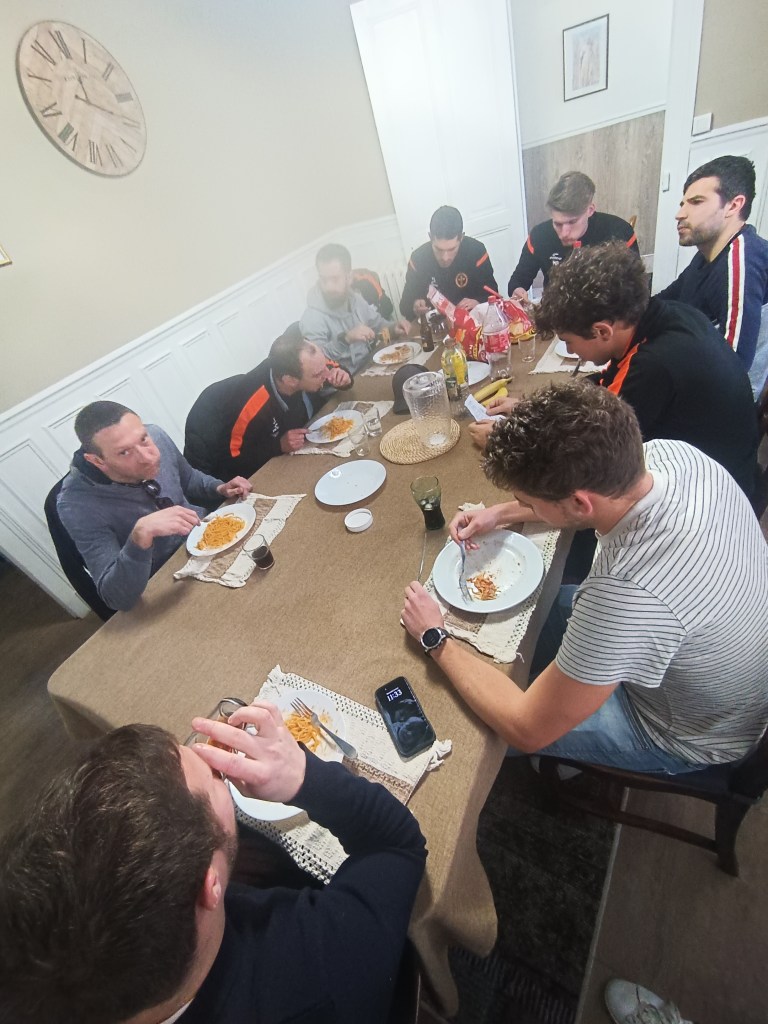 Et comme un déplacement de la sorte ne s’improvise pas, le club avait décidé de réserver un logement sur place afin de créer un véritable weekend de cohésion d’équipe avant de mouiller le maillot le dimanche après-midi. Et comme vous le remarquerez, la priorité fut rapidement de trouver un bar ^^.