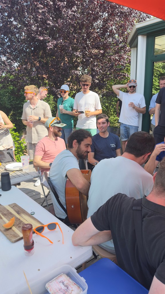 Pour clôturer cette saison pleine de sueur, de frappes (parfois cadrées) et d’émotions, rien de mieux qu’un bon vieux BBQ à la sauce club ! Cette année, on était une bonne quarantaine de loustiques (10 de plus que l’an dernier!), avec plein de nouveaux venus qui se sont parfaitement fondus dans l’ambiance. Sous un soleil de plomb (35 degrés au compteur ☀️), on a partagé un vrai moment de convivialité, de midi à 20h — voire bien plus tard pour les plus vaillants qui ont poussé jusqu’au bar à Lille.